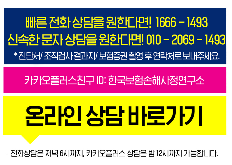 카카오톡에서 ‘한국보험손해사정연구소’를 검색하셔서 채팅상담을