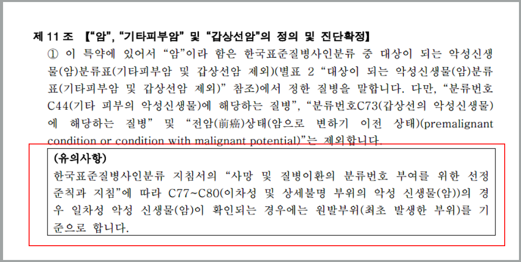 당사에서에서 그 이전 계약에 대해 많은 소송을 하여 일반암을 받아내자 대부분의 보험회사들이 2011년도를 기준으로 위 유의사항을 삽입 했습니다.