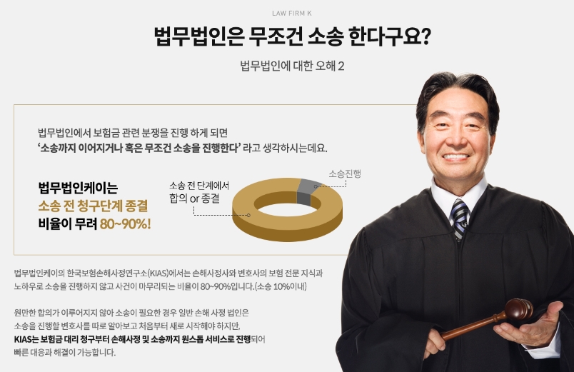때문에 최근엔 당사와 같이 변호사와 손해사정사가 모두 소속되어 있는 법무법인에 분쟁대리를 의뢰하는 추세입니다.