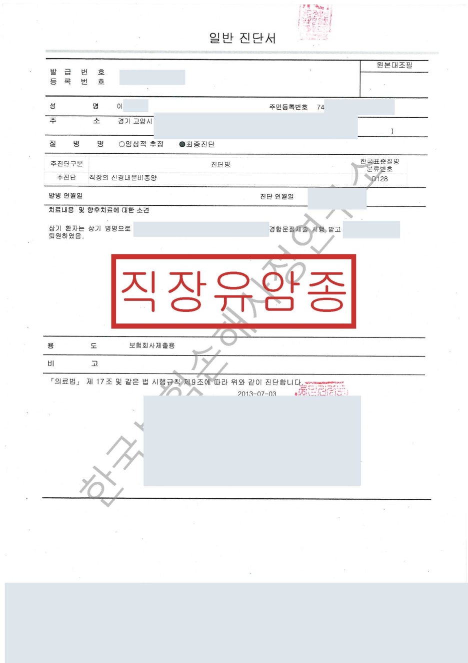위의 진단서를 한번 보시겠어요? D128 진단을 받으시고