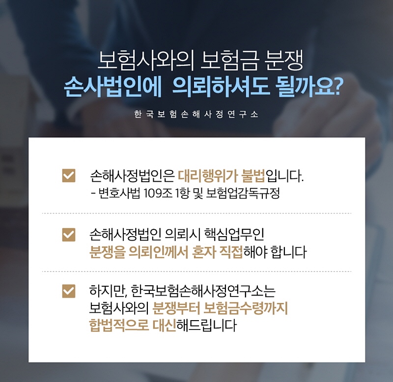 당사는 보험 분쟁을 전문적으로 대응할 수 있는 기관인데요.